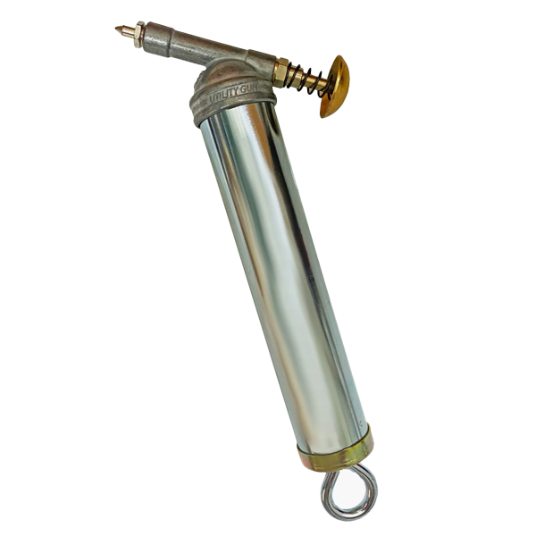 This grease gun is made for 3 ounce Lucas Red “N” Tacky Grease in cartridge form. It makes for relatively clean changeout of cartridges. The needle nose applicator works well for greasing between worm gear teeth and the holes in the handle that feed the drive axle.